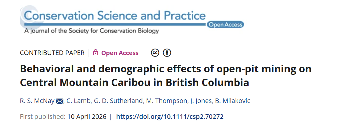Mark and Jason are co-authors on a new paper published in Conservation Science and Practice examining the effects of open pit coal mining on caribou in the Quintette herd. You can read their paper here!